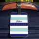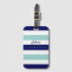 Étiquette À Bagage bandes horizontales bleues (2 tons) avec nom