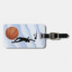 A quality luggage tag for the Basketball enthusiast. Double sided with image on one side and name and address on the other. The design features the silhouette of a player making a basket alongside the image of a basketball. On a varied, blue background. When you select “Personalize this design” you will be offered options to easily change the text (wording, plus type font, color, size, position) and to possibly edit the design elements with changes you may want to make.