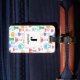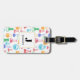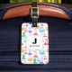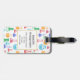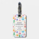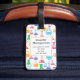 Une étiquette bagage avec un motif amusant et coloré. Un scientifique de recherche vibe avec des beakers et des flacons de différentes formes et tailles dans des couleurs vives et joyeuses.