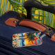 Beach art luggage tag. An impasto oil painting style ai illustration of a beach full of palm trees, sea glass, sea shells and ocean waves at sunset. A bright colorful mesh of colors make this coastal art vibrant and beautiful!