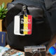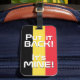 Drapeau national de Belgique Drôle Funny Bagage patriotique Tag avec les couleurs du drapeau national de Belgique couvrant le côté avant de la balise. Drôle texte "Rentre-le ! C'est MINE" est écrit sur les couleurs du drapeau. Le texte est entièrement personnalisable à l'aide de la fonction "Customiser !". L'autre côté de la balise est réservé à vos informations. Cette étiquette de bagage Belgique super amusante est le compagnon parfait pour votre sac de voyage et le beau cadeau pour toute occasion. © PaysDuMonde