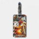 Étiquette À Bagage Bichon Frise Fireplace with Christmas Lights