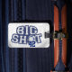 Big Shot Soccer Ball est conçu avec un style collégial courbant lettrage avec le O dans "shot" comme un ballon de football bleu et blanc peint, futball, ou football. Idéal pour les amateurs de sports de tous âges.