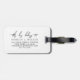 On the back, the background stays white with all text in a mix of gray and black for a sleek, easy-to-read layout. The phrase “This bag belongs to” appears in a script font, followed by your name and contact details shown in a combination of serif and script for a polished look. All colors can be customized, allowing you to adjust the initials, fonts, and accents to match your personal style. A practical and thoughtful gift for frequent travelers, perfect for birthdays, holidays, or anytime you want to add a personalized touch to someone’s luggage.