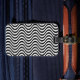 Marque à bagages imprimée tout-en-un avec un design ondulé noir et blanc au format SVG. Comme l'océan ou un zigzag incurvé ou Chevron art. Changez l'arrière - plan coloré et changez les lignes ondulées noires en couleurs différentes.