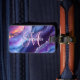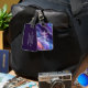 Créez votre propre étiquette de sac d'art numérique en marbre rose, bleu et violet foncé. Vous pouvez augmenter ou diminuer la taille de police sur le dos si nécessaire. Tous les éléments graphiques et graphiques girly de ce design seront imprimés comme une photo numérique. Customisez le style de police du monogramme du script curly et l'élégant style de police royal violet du nom. Vous pouvez également modifier la couleur arrière - plan violet royale à l'arrière.