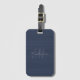 Étiquette À Bagage Bleu foncé rayures personnalisées Monogramme Nom M