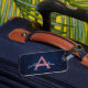 Étiquette À Bagage Bleu marine et monogramme pailleté or rose