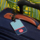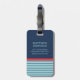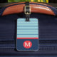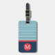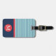 Étiquette À Bagage Bleu rouge bande Monogramme Nom Adresse Bagage Bal