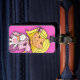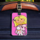 Balise bagage mignonne idéale pour les enfants cette étiquette id nommée vous aidera à trouver votre coque. Personnalisez avec votre nom et votre adresse au verso. Porte bagage utile avec une fille tenant son jouet coudé lapin lapin lapin farci. OEuvre graphique et design de la designer Sarah Trett.