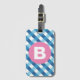 Étiquette À Bagage Blue and White Plaid Checked Pink Monogram