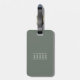 Cette étiquette de bagage pour chien de porc personnalisée comporte un mignon motif de plumes dessinées à la main, de fleurs et de paisibles en blanc sur un arrière - plan de sauge poussiéreux avec des fleurs d'accent vert de sauge foncé - personnaliser avec son monogramme sur le devant, identification des informations sur le dos - par katz_d_zynes | rechercher "boho+plumes" dans ma boutique pour plus de motifs et de produits de style boho plumes / fleurs / paisley