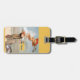 Vintage Gil Elvgren pinup à partir en voyage, avec coordination arrière - plan jaune. Personnalisez votre étiquette de bagages sur le dos avec votre nom ; sur un joli arrière - plan bleu assorti.