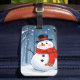 Étiquette À Bagage Bonhomme de neige dans une forêt froide avec une é