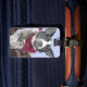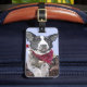 L'avant de l'étiquette à bagages est ornée d'un croquis numérique d'une photographie d'un adorable chien coloré blanc et noir de la Frontière Collie Heeler, portant un bandana rouge autour du cou. Remplacez la photo du modèle par la photo de votre animal de compagnie. Une photo au format vertical fonctionne le mieux. Remplissez le champ modèle avec vos informations pour le texte arrière, supprimez le texte ou cliquez sur la personnaliser pour sélectionner le style, la taille et la couleur de la police que vous préférez. En personnaliser, vous pouvez également sélectionner une couleur arrière - plan autre que le bleu sur le dos. Cette marque de bagage est également disponible sur le modèle de fente carte de visite.