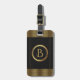 Étiquette À Bagage Bordure en cuir noir Monogramme