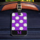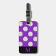 Balise de bagage avec balles de volley-ball noir/blanc, initiale(s) monogramme/nom, et adresse d'un arrière - plan violet. Personnalisez avec vos initiales monogrammes/nom, nom et adresse en utilisant les modèles faciles. La couleur de police, le style de police, la taille de police et la couleur violet arrière - plan sont personnalisables. Parfait pour les sportifs.