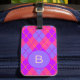 Étiquette À Bagage Bright Pink and Blue Argyle Pattern Monogram