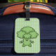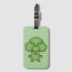Brocoli de dessin animé vert mignon avec un visage heureux adorable. Le fond est un motif à carreaux vert et blanc.