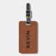 Étiquette À Bagage Brown Faux Leather Texture Monogram