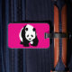 Cadeaux fuchsia de faune de zoo de roses indien mignonnes d'ours panda. Une silhouette mignonne d'ours panda sur un arrière - plan de fuchsia de roses indien. Cadeaux frais pour les filles ou le cadeau de zoo.