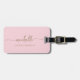 Élégant Moderne Chic Étiquette de Bagage Personnalisée avec Monogramme en Or, Nom et Signature en Écriture Manuscrite. Ce design délicat présente un nom personnalisé dans une police calligraphique cursive avec fioritures (ou typographie) et le nom complet ainsi que les informations de contact (au dos) en or sur fond rose poudré ou rose pastel. Celles-ci sont faciles à personnaliser. Cadeau féminin élégant pour un mariage, une douche de mariée, un anniversaire de 16 ans, une remise de diplôme, et pour quiconque aime le style glamour.