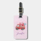 Une étiquette de bagage avec un joli camion d'aquarelle rouge. Portant des coeurs et des fleurs à l'arrière. Je t'aime, écrit sur le côté. Whimsical et adorable. Arrière - plan à motif rose clair.