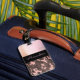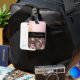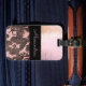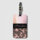 Sur cette étiquette élégante de bagage est une texture en verre dépoli rose pâle avec un ruban noir où vous pouvez le personnaliser pour le rendre unique à vous et en dessous qui est un motif de camouflage rose et marron pour le contraste. Des vibes chic branchées.