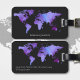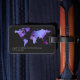 Étiquette À Bagage Carte du monde de l'aquarelle violette et noire pe