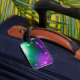 Bright purple and green background with shiny confeti. Mardi gras du festival.