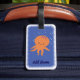 Un mignon poulpe orange. Balises de bagages bleues personnalisées. Modifiez le nom pour customiser. Idée cadeau.
