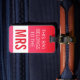 Voici une étiquette ultra chic de bagage créée particulièrement pour la moitié femelle des couples. Si vibrantes et ultra féminines l'arrière - plan coloré par roses indien ne la donne pas loin, les grands caractères gras dans le blanc et les roses indien coordonnées déclarant que le sac appartient à Mme.