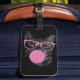 Étiquette À Bagage Chat cool avec lunettes roses et gomme à bulles