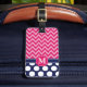 Étiquette À Bagage Chaud rose et Navy Chevron Zigzag Pois Monogramme
