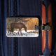 Faites ressortir vos bagages sur un carrousel d'aéroport avec des étiquettes uniques ! Cette étiquette à bagages comporte un cheval brun qui cherche les pommes tombées sous la neige blanche, sur fond de collines dorées, jaunes et oranges nues. Customisez l'envers avec vos renseignements personnels.
