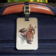 Cette scène Vintage avec cheval et dame a un charme intemporel pour tous les équestres et amoureux des animaux. La femme offre un régal et profite d'un moment tranquille avec son cheval préféré. Customisez de revenir à la zone de texte de la balise de bagage ou supprimez-la si vous le souhaitez.