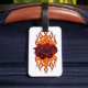 Trouvez votre sac instantanément avec cette étiquette de bagage avec une tête de cheval rouge enflammée et des flammes de style tribal. Dur, attrayant et prêt à voyager, il ajoute à la fois identité et style à votre valise. Parfait pour les voyageurs qui veulent quelque chose d'unique et plein d'énergie.