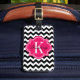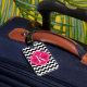 Étiquette À Bagage Chevron noir et blanc avec le monogramme de roses