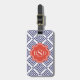 Étiquette À Bagage Chic bleu grec clé motif géométrique monogramme