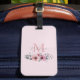 Étiquette de bagage monogramme floral chic botanique plantes élégantes feuillage gris rose blush