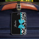 Étiquette À Bagage Chic Giraffe Imprimer Aqua Blue Ribbon Bow Nom