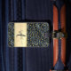 Elégant motif léopard sur le bleu et l'or avec votre monogramme.L'idée cadeau romantique parfaite. Cliquez sur le bouton Customiser pour modifier les polices, déplacer le texte et customiser davantage votre conception.