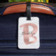 Marbre blanc et gris chic rose lettre d'or B monogramme nom bagage tag. Ce design branché présente une grande lettre d'or rose métallique "B". La lettre ne peut pas être modifiée, mais s'il vous plaît voir ma collection d'alphabet d'or rose pour d'autres lettres. Votre nom personnalisé est écrit dans un élégant script écrit à la main. Un cadeau d'anniversaire ou de Noël parfait !