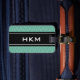 Marque de voyage monogramme de 3 lettres personnalisée. Style moderne et élégant. Design classique à bandes zig zag motif à menthe verte, noire et grise, avec des lettres initiales de nom monogrammé blanc. Une idée cadeau élégante pour les hommes et les femmes. Design sophistiqué en zigzag mince avec couleur arrière - plan personnalisée. La typographie élégante.