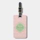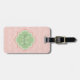 Une étiquette de bagage motif en arc rose pâle et rose pâle avec un badge vert doux en quatrefoil que vous pouvez personnaliser en ajoutant facilement votre propre monogramme et votre nom. Cela fait partie de la collection de printemps du Monogramme vert du Nil des pétoncles Dahlia en fleurs.