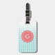 Étiquette À Bagage chic preppy turquoise en vichy motif monogramme