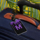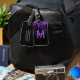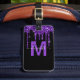 Voyagez dans le style avec cette étiquette de parties scintillant personnalisée et sac à bagages glam Le design élégant comprend une bordure au sommet de la parties scintillant à goutte faux violet avec des étincelles. Dans le centre est votre monogramme initial en violet avec votre nom dans un script blanc écrit à la main moderne sur un arrière - plan de noir. Le dos de la étiquette de bagage a votre nom et adresse à personnaliser. Conçu pour vous par des Tee - shirts extrêmes !