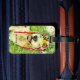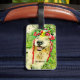 Faites le monde connaître votre bagage appartient à VOUS avec cette étiquette mignonne ! Caractéristiques de conception un rendu d'aquarelle d'un chien de golden retriever, qui utilise une couronne rouge de fleur avec les rubans rouges.