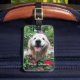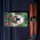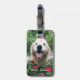 Déposez vos bagages avec style avec cette étiquette unique ! Design présente une photo d'un chien de repérage doré mignon et souriant qui se trouve à l'extérieur au milieu de fleurs rouges sauvages.