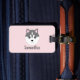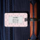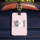 Cette étiquette à bagages à double face illustre un chiot sibérien Husky aux yeux bleus. Ce chien est dressé contre un arrière - plan rose pâle. Customisez cette étiquette de bagage avec votre nom, numéro de téléphone et adresse.